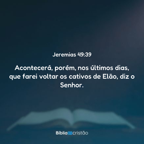 Acontecerá, porém, nos últimos dias, que farei voltar os cativos de Elão, diz o Senhor.