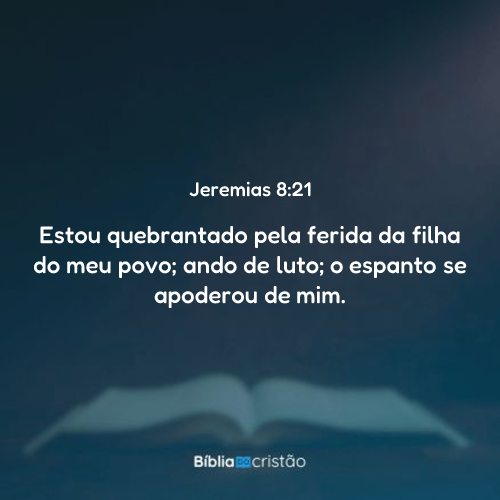 Estou quebrantado pela ferida da filha do meu povo; ando de luto; o espanto se apoderou de mim.