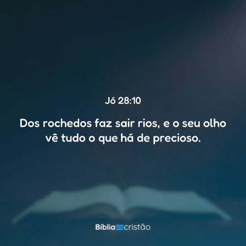 Dos rochedos faz sair rios, e o seu olho descobre todas as coisas preciosas.