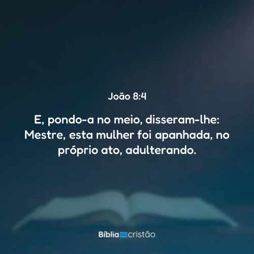4 E, pondo-a no meio, disseram-lhe: Mestre, esta mulher foi apanhada, no próprio ato, adulterando.