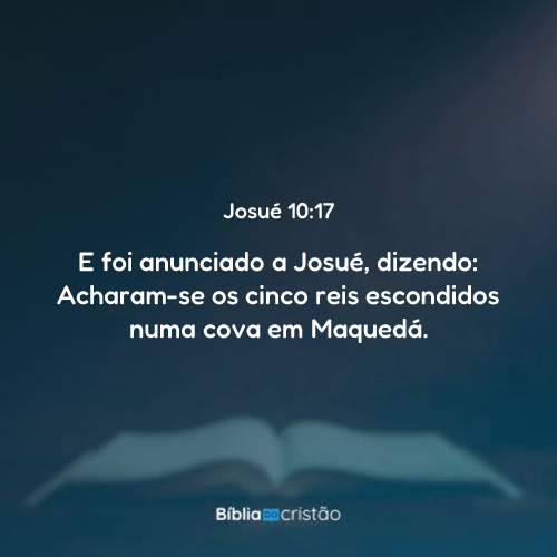17 E foi anunciado a Josué, dizendo: Acharam-se os cinco reis escondidos numa cova em Maquedá.