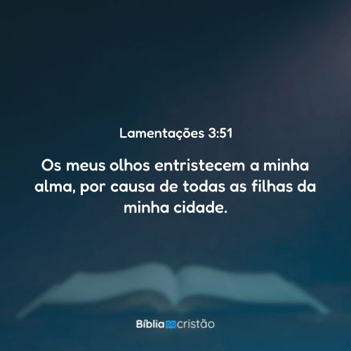51 Os meus olhos entristecem a minha alma, por causa de todas as filhas da minha cidade.