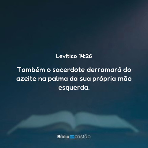 26 Também o sacerdote derramará do azeite na palma da sua própria mão esquerda.