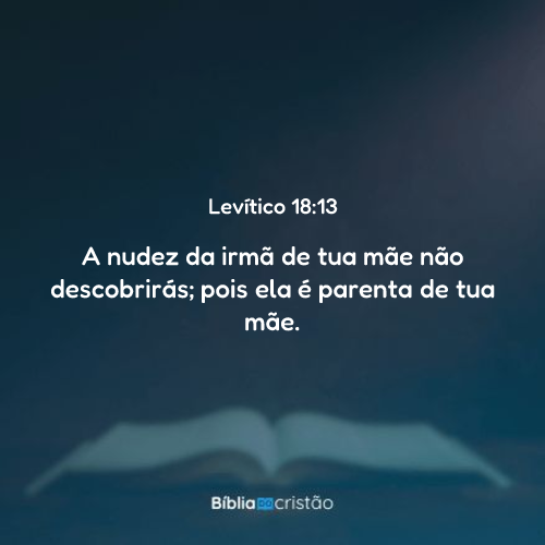 Não descobrirás a nudez da irmã de tua mãe, pois ela é parenta chegada de tua mãe.