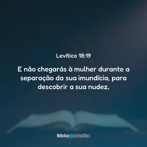 Não te aproximarás de uma mulher, para descobrir sua nudez, durante o período impuro da menstruação.