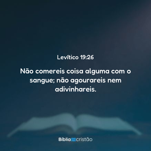 Não comereis coisa alguma com sangue; não agourareis, nem adivinhareis.