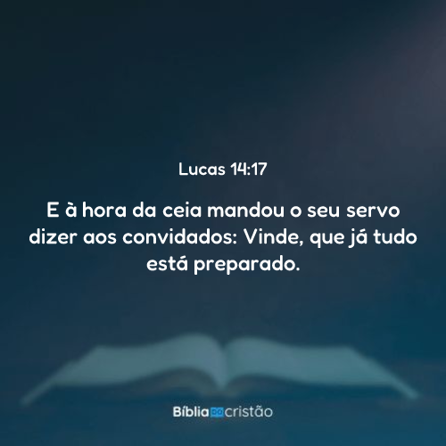 17 E à hora da ceia mandou o seu servo dizer aos convidados: Vinde, que já tudo está preparado.