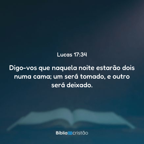34 Digo-vos que naquela noite estarão dois numa cama; um será tomado, e outro será deixado.