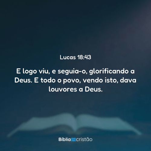 Imediatamente ele passou a ver de novo e seguia Jesus, glorificando a Deus. Também todo o povo, vendo isto, dava louvores a Deus.