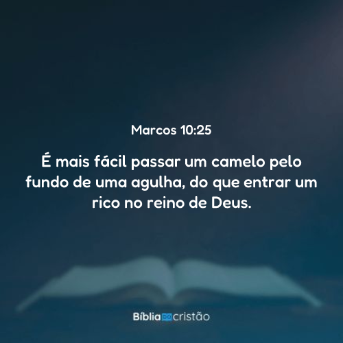 25 É mais fácil passar um camelo pelo fundo de uma agulha, do que entrar um rico no reino de Deus.