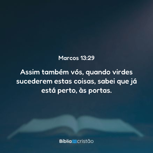 Dessa mesma maneira, assim que observardes esses sinais ocorrendo, sabei que o tempo está próximo, já às portas.