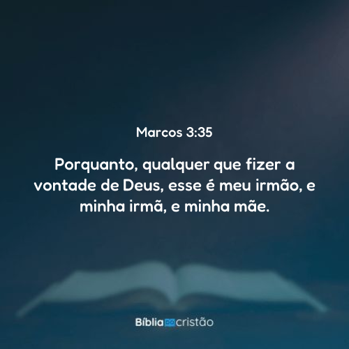 Porquanto, qualquer que fizer a vontade de Deus, esse é meu irmão, e minha irmã, e minha mãe.