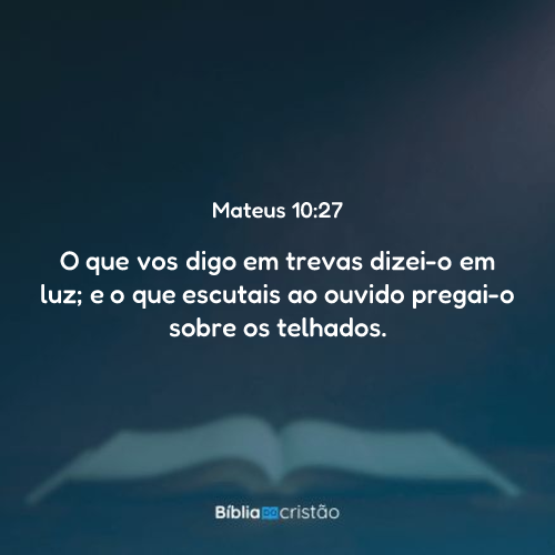 O que vos digo em trevas, dizei-o em luz; e o que escutais ao ouvido, pregai- o sobre os telhados.