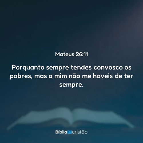 Pois, quanto aos pobres, sempre os tendes convosco, mas a mim nem sempre me tereis.