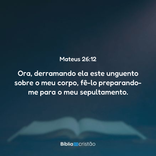 Ora, derramando ela este bálsamo sobre o meu corpo, fê-lo a fim de preparar-me para a minha sepultura.