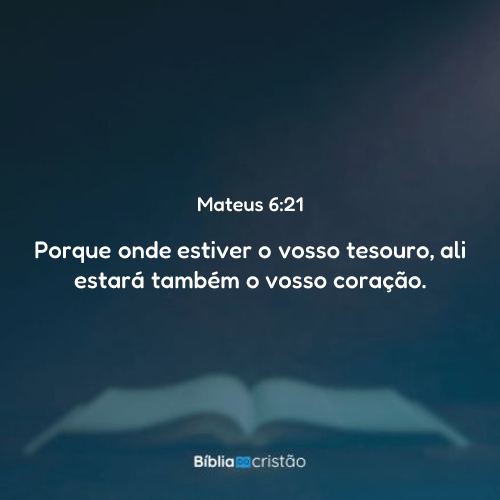 21 Porque onde estiver o vosso tesouro, ali estará também o vosso coração.