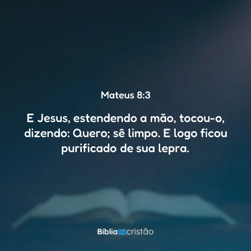 Jesus estendeu a mão e tocou nele. “Eu quero”, respondeu. “Seja curado e fique limpo!” No mesmo instante, o homem foi curado da lepra.