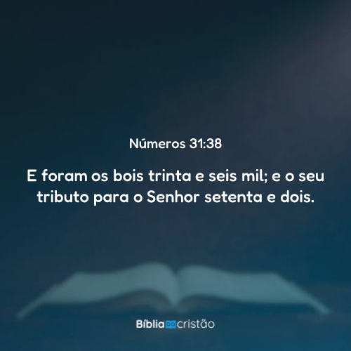 38 E foram os bois trinta e seis mil; e o seu tributo para o Senhor setenta e dois.