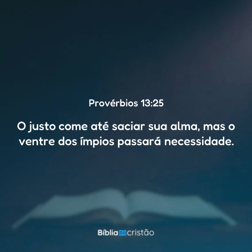 25 O justo come até saciar sua alma, mas o ventre dos ímpios passará necessidade.