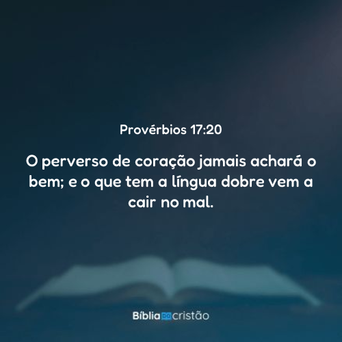 20 O perverso de coração jamais achará o bem; e o que tem a língua dobre vem a cair no mal.