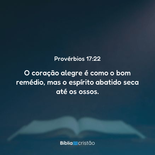 O coração alegre serve de bom remédio; mas o espírito abatido seca os ossos.