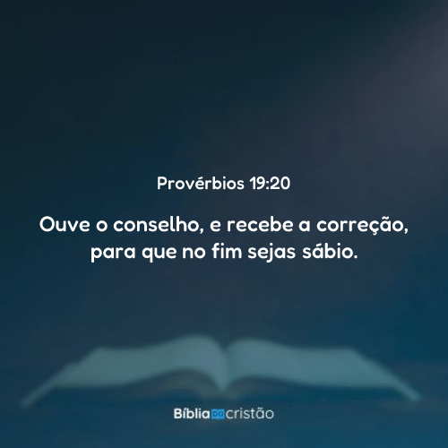 20 Ouve o conselho, e recebe a correção, para que no fim sejas sábio.