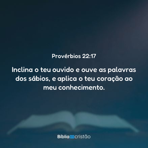 Inclina o ouvido, e ouve as palavras dos sábios, e aplica o coração ao meu conhecimento.