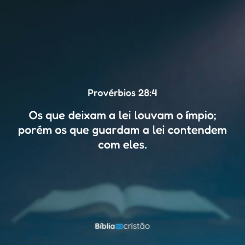 4 Os que deixam a lei louvam o ímpio; porém os que guardam a lei contendem com eles.