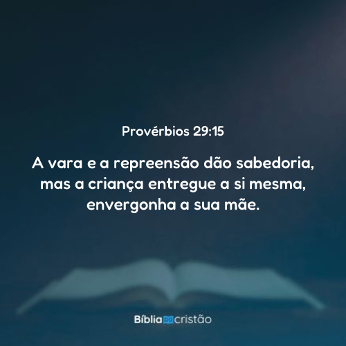 A vara e a repreensão dão sabedoria, mas o rapaz entregue a si mesmo envergonha a sua mãe.