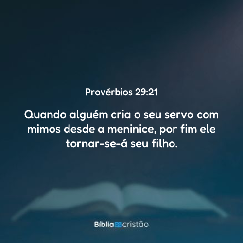 21 Quando alguém cria o seu servo com mimos desde a meninice, por fim ele tornar-se-á seu filho.