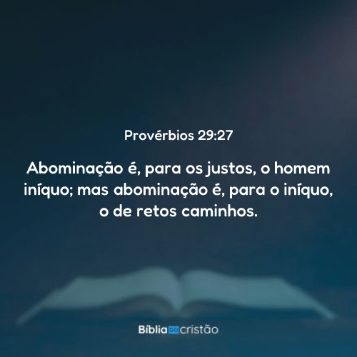 O ímpio é abominação para os justos; e o que é reto no seu caminho é abominação para o ímpio.