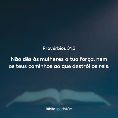Não dê às mulheres a sua força, nem os seus caminhos às que destroem os reis.