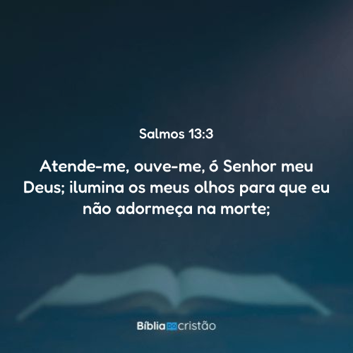 Atenta em mim, ouve-me, ó SENHOR, meu Deus; alumia os meus olhos para que eu não adormeça na morte;