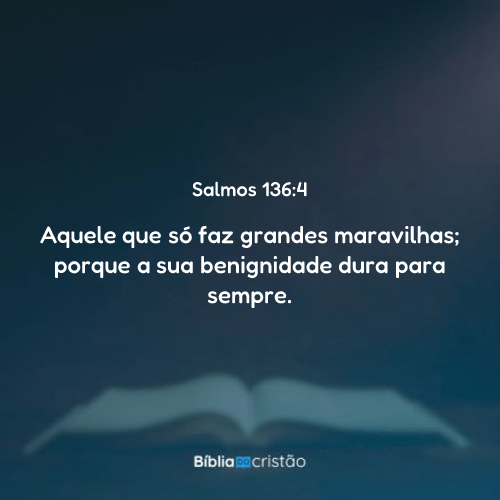 4 Aquele que só faz grandes maravilhas; porque a sua benignidade dura para sempre.