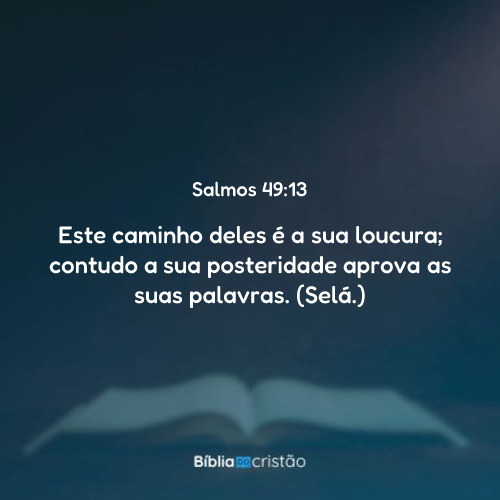 13 Este caminho deles é a sua loucura; contudo a sua posteridade aprova as suas palavras. (Selá.)
