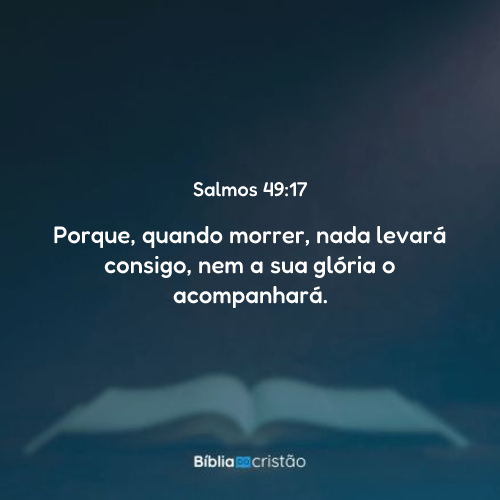 Porque, quando morrer, nada levará consigo, nem a sua glória o acompanhará.