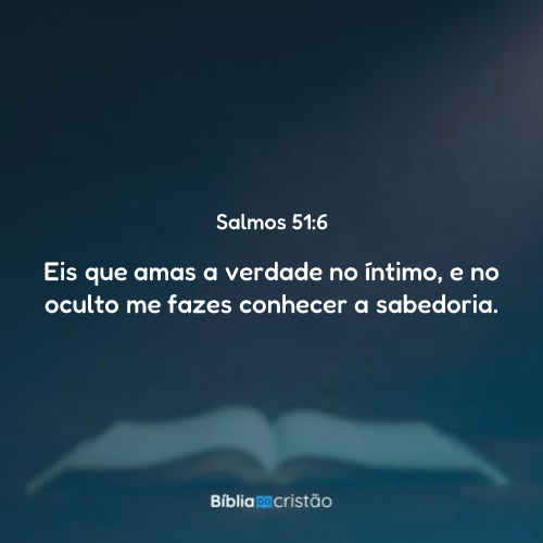 6 Eis que amas a verdade no íntimo, e no oculto me fazes conhecer a sabedoria.