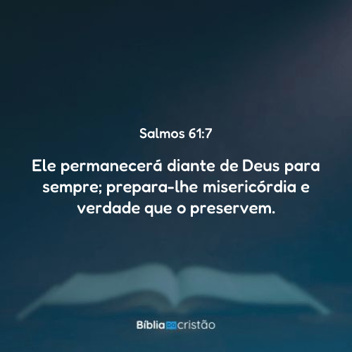 Ele permanecerá diante de Deus para sempre; prepara- lhe misericórdia e verdade que o preservem.