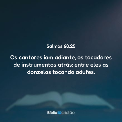 25 Os cantores iam adiante, os tocadores de instrumentos atrás; entre eles as donzelas tocando adufes.