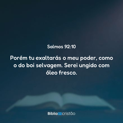 10 Porém tu exaltarás o meu poder, como o do boi selvagem. Serei ungido com óleo fresco.