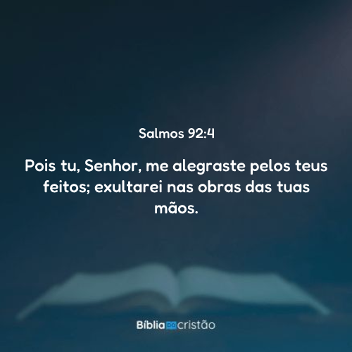 Pois tu, Senhor, me alegraste pelos teus feitos; exultarei nas obras das tuas mãos.