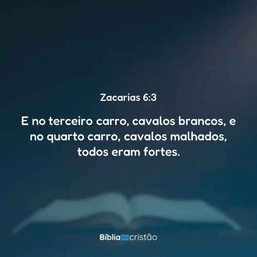 E, no terceiro carro, cavalos brancos, e, no quarto carro, cavalos grisalhos e fortes.